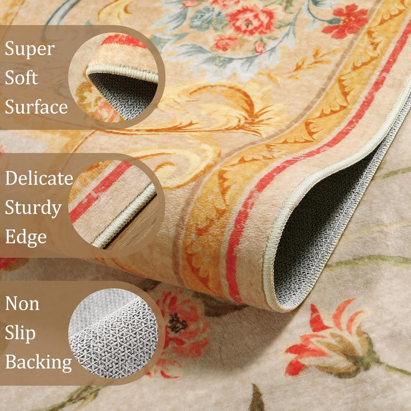 Morebes Area Rugs French style Utral-Thin Bedroom Rug Anti Skid, Soft Low Pile Indoor Carpet for Nursery Office Dining Room Playroom