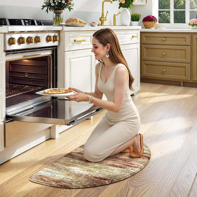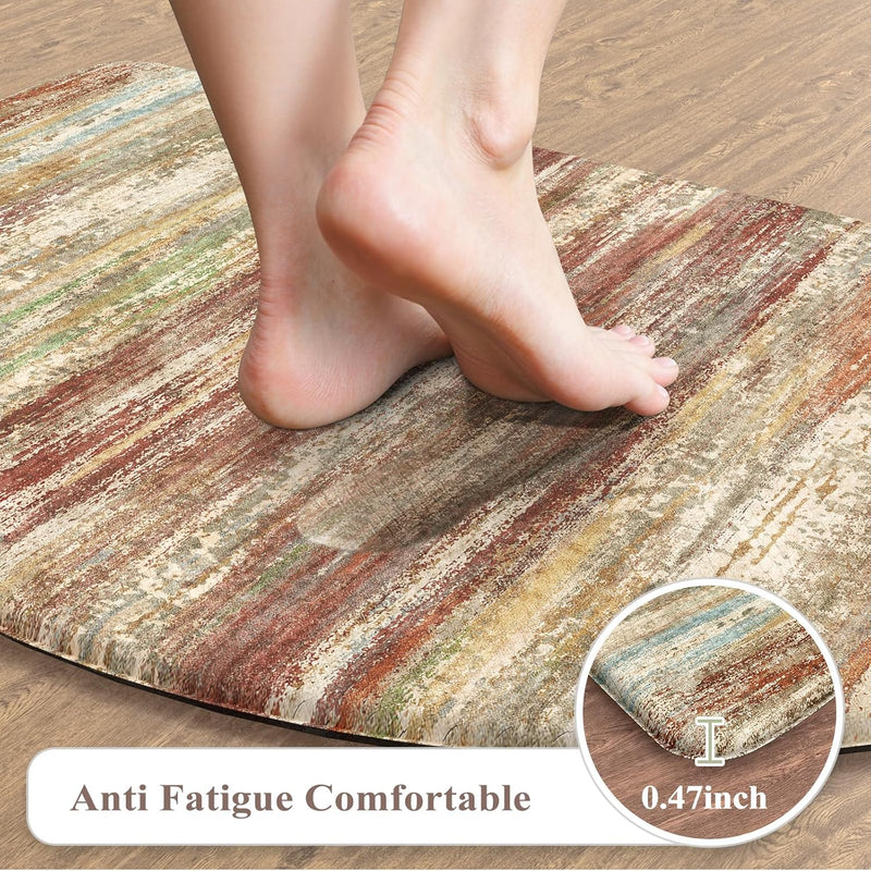 KIMODE Kitchen Mats Anti Fatigue Half Circle Cushioned Kitchen Floor Mats, Red Brown Abstract Kitchen Rug, Comfort Ergonomic Standing Desk Mat for Sink Laundry