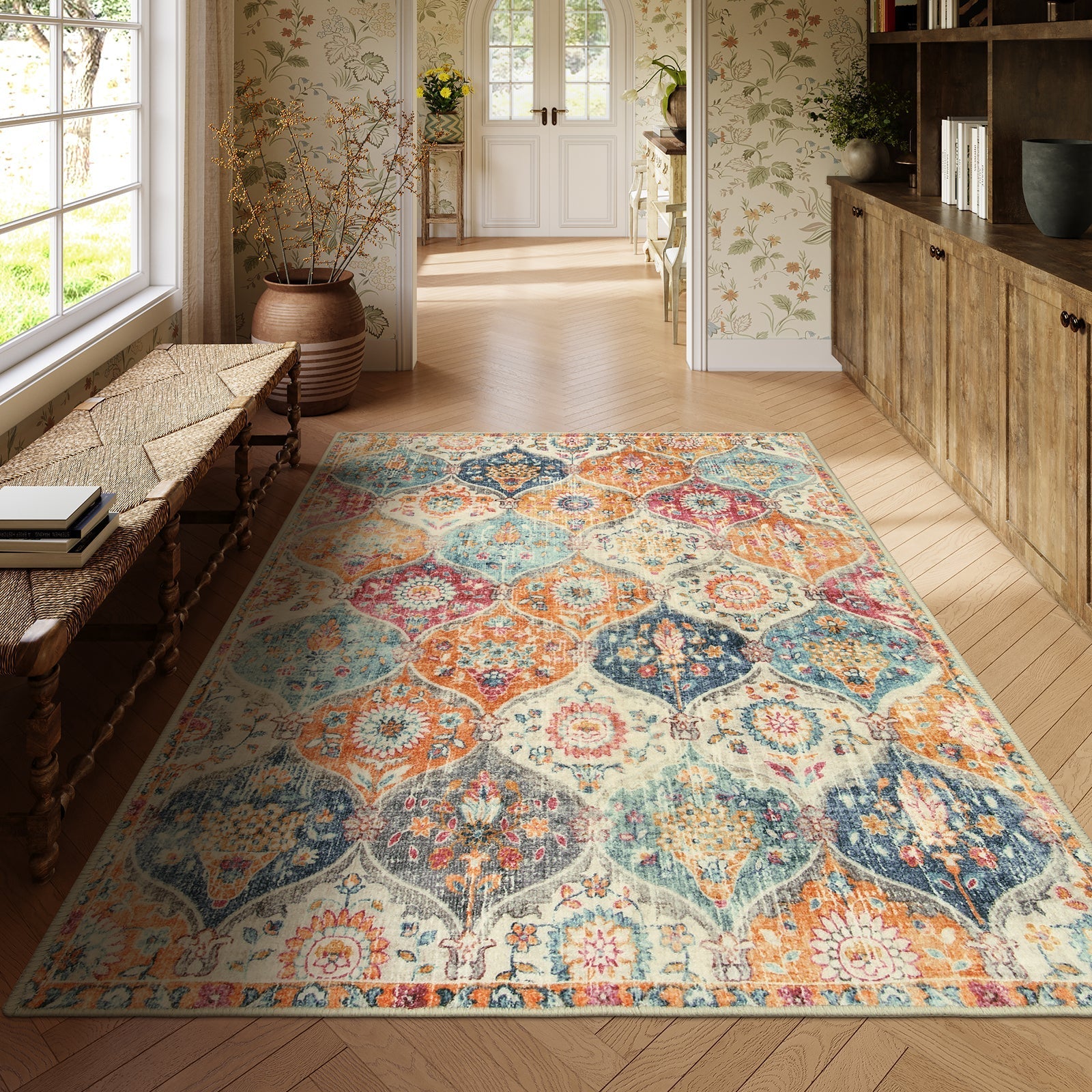 - Soft and Designed: This rug has a trendy faded style and a unique floral pattern, vintage tones blend perfectly with your home. This rug is made of faux wool fibers; Easy on the feet-soft as cotton balls; stain-resistant and non-shedding